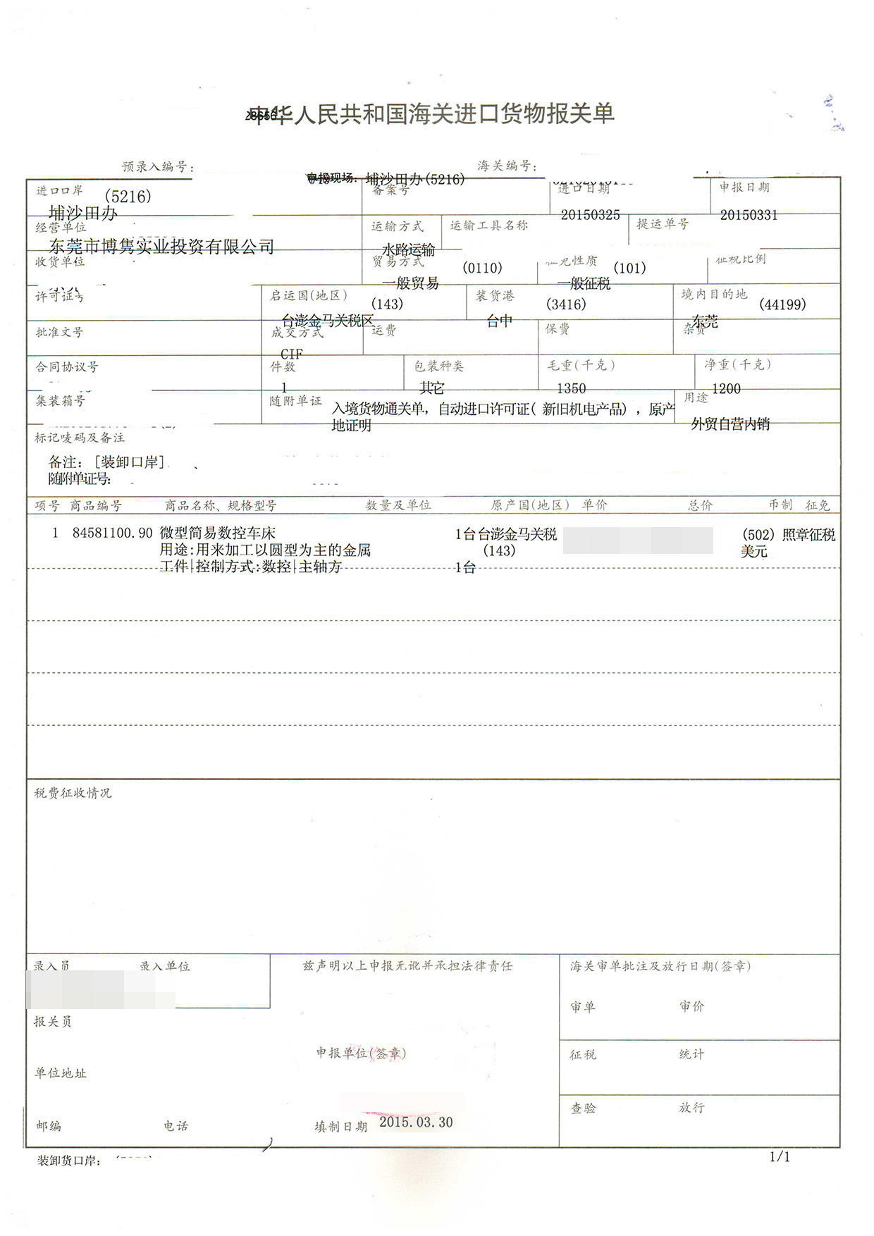三、數控車床進口報關案例展示