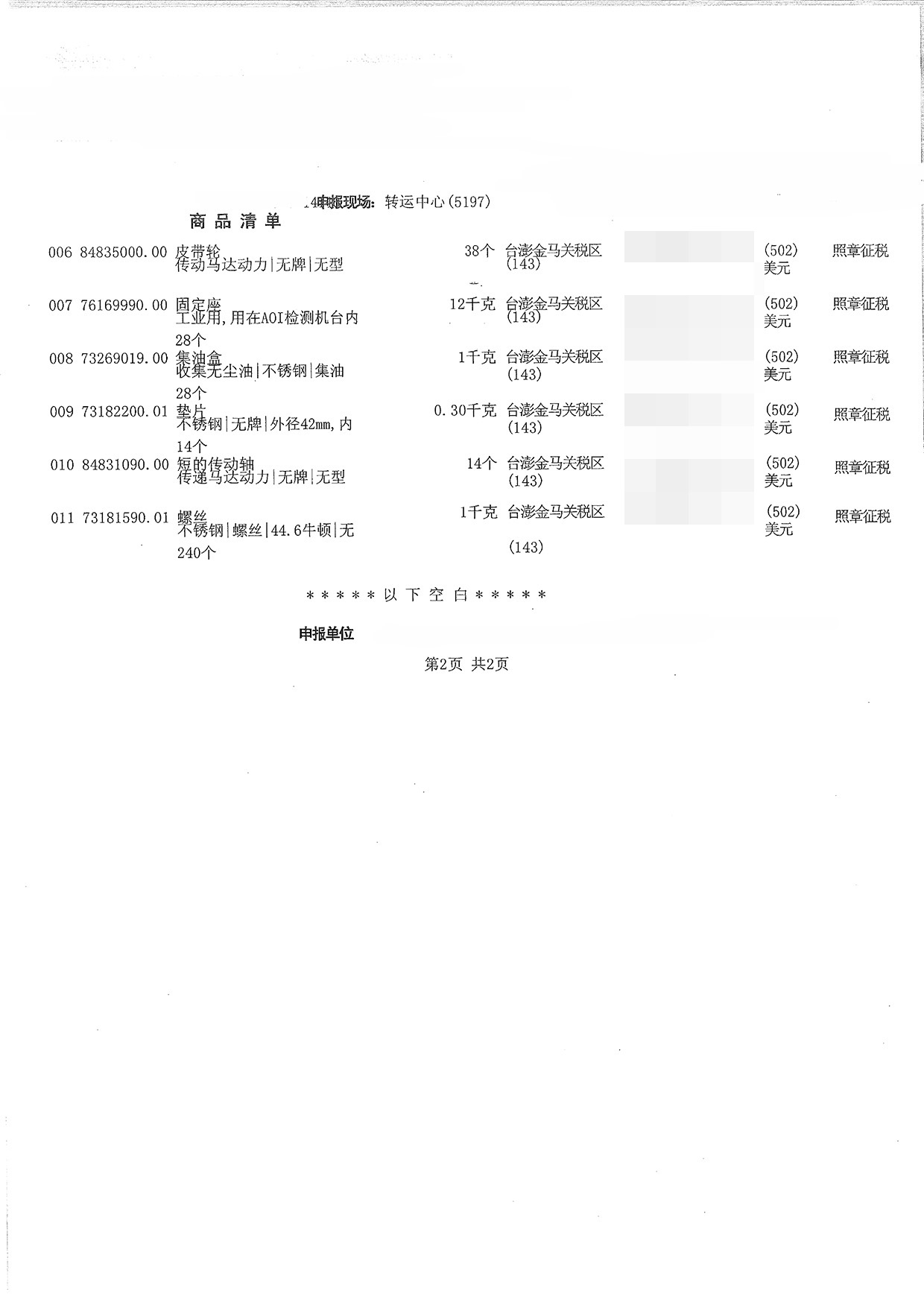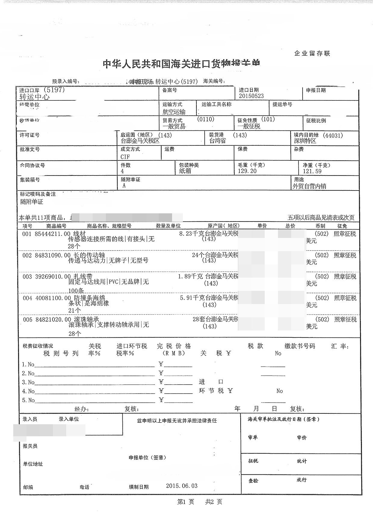 三、配件(線材等)進(jìn)口報關(guān)案例展示