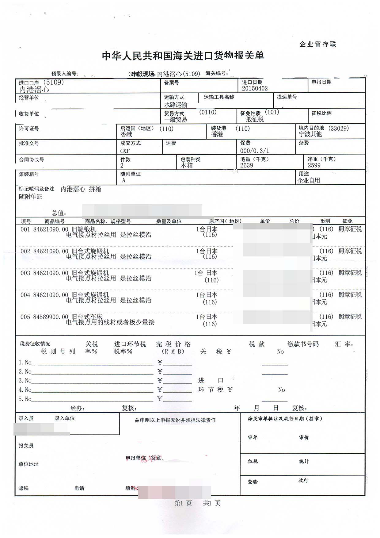 一、舊旋鍛機進口報關手續(xù)資料