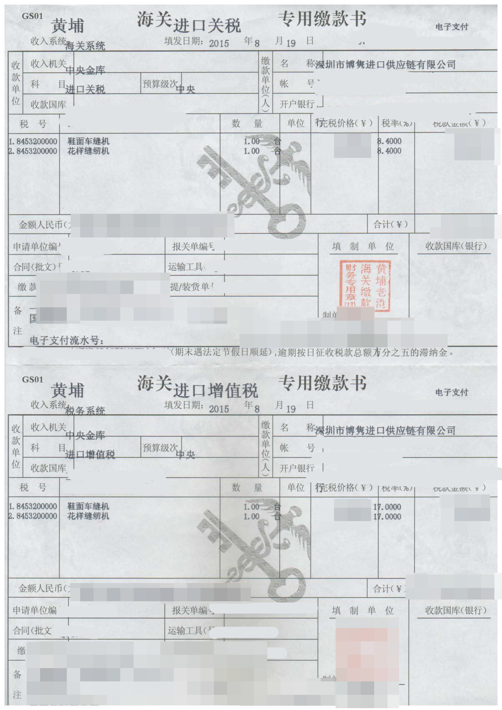 三、鞋面車縫機(jī)進(jìn)口報(bào)關(guān)案例展示