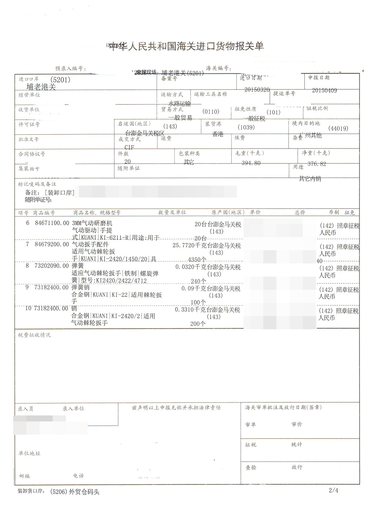 三、氣動工具進口報關案例展示