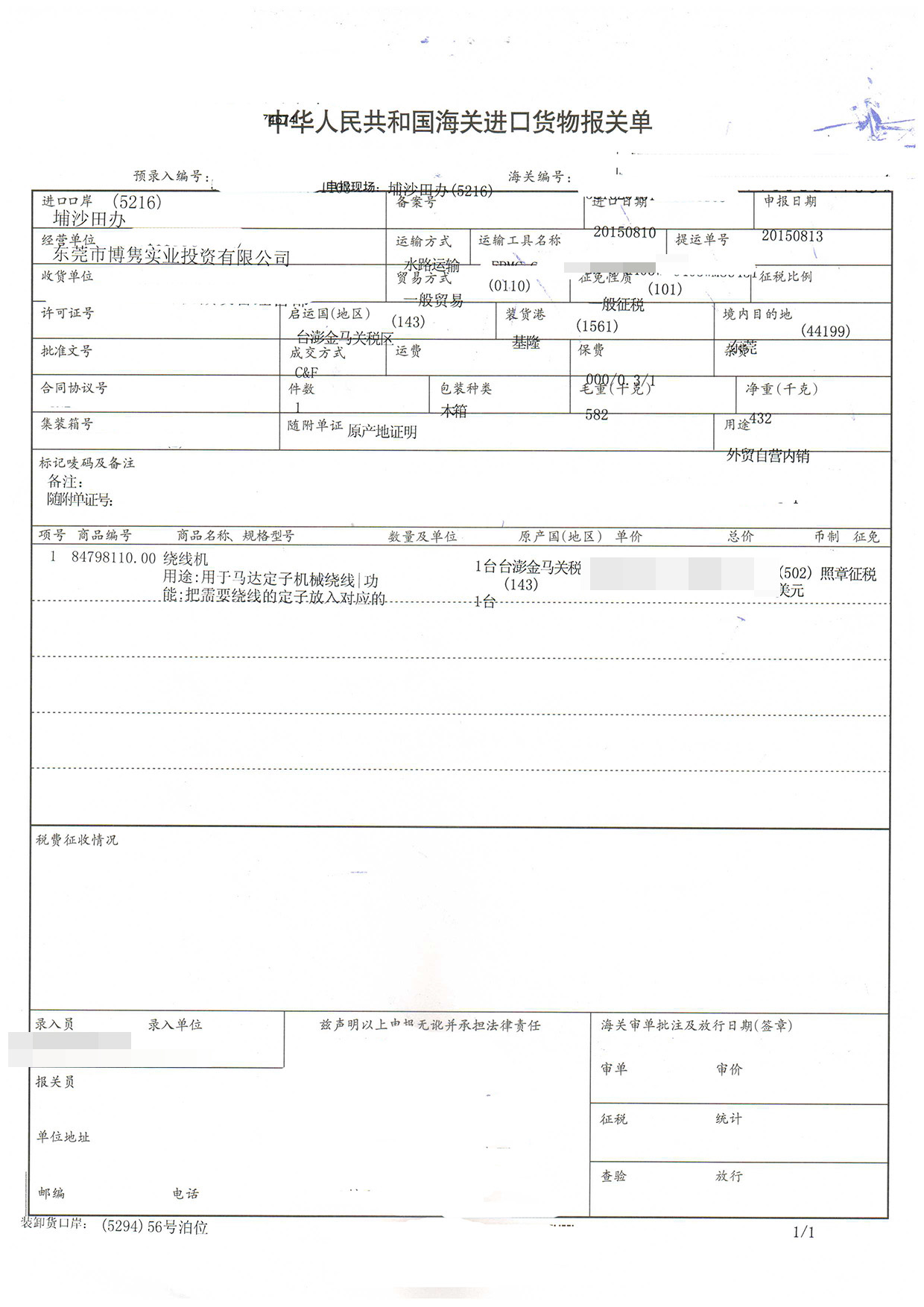 【文章標題】:繞線機進口報關手續及案例【建議收藏】 http://www.fnbkj.com/lm9/93.html 轉載請注明出處