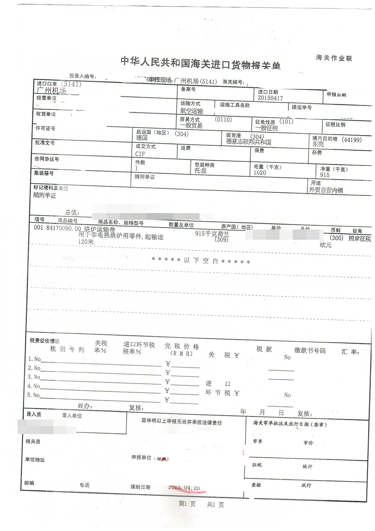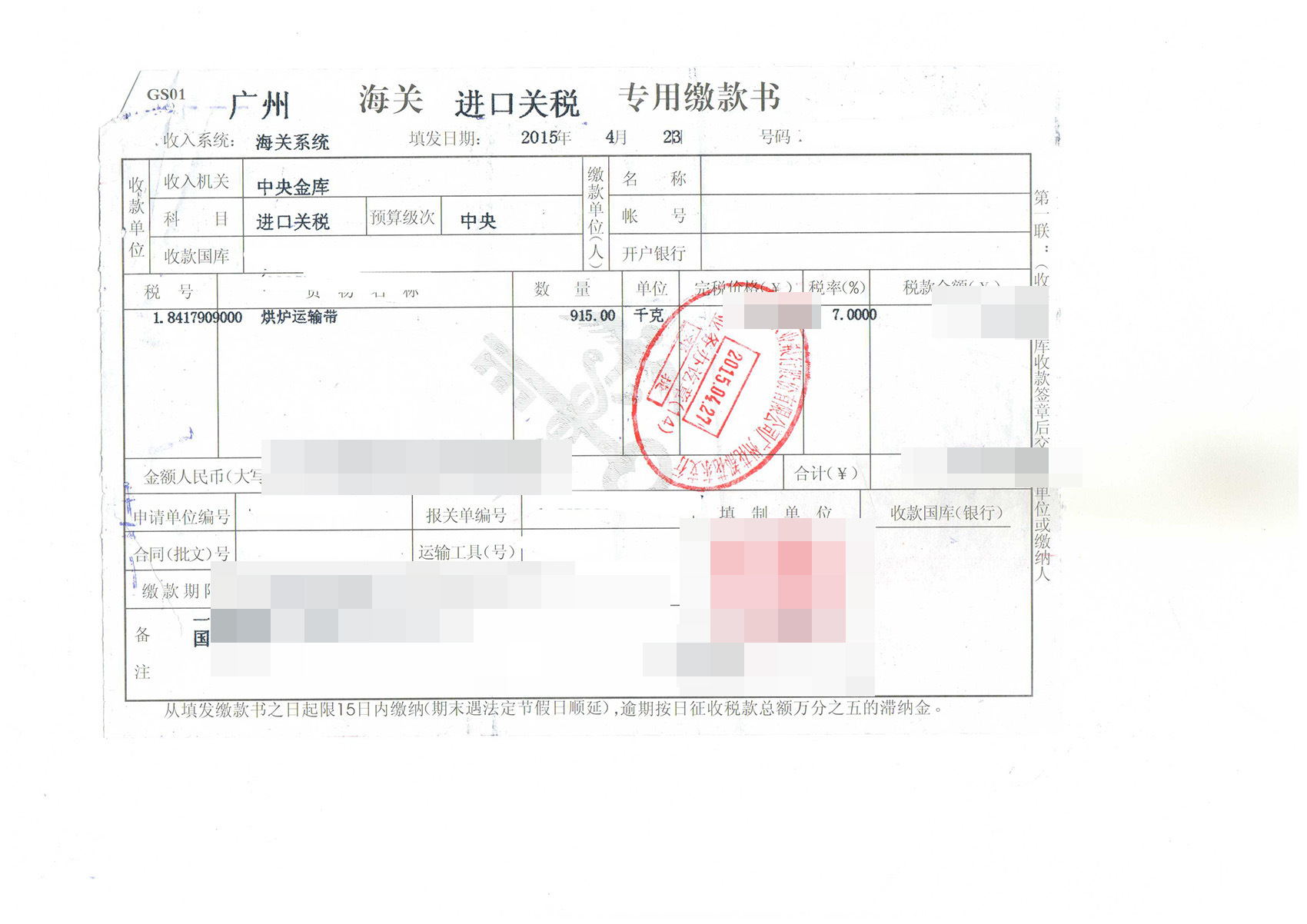 三、烘爐運輸帶進口報關案例展示